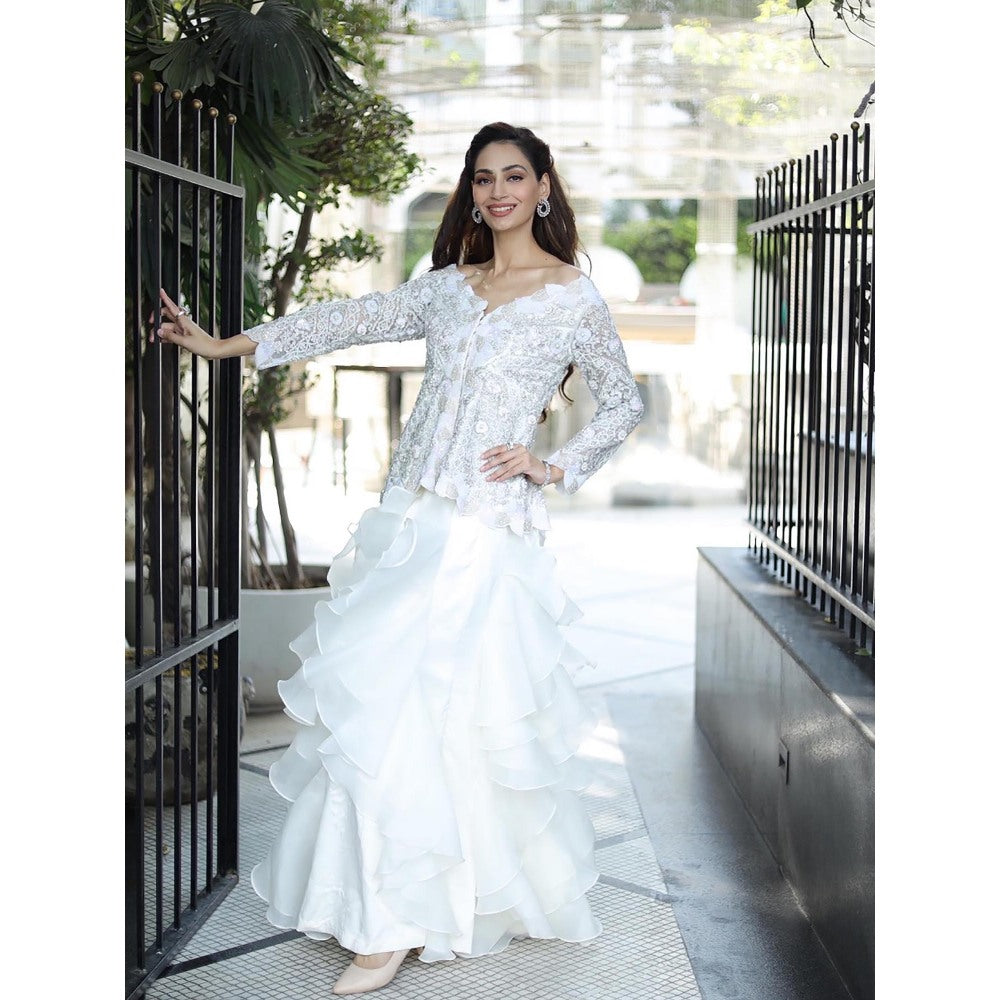 Akanksha Mago Alia White Kurta & Ruffled Skirt (Set of 2)