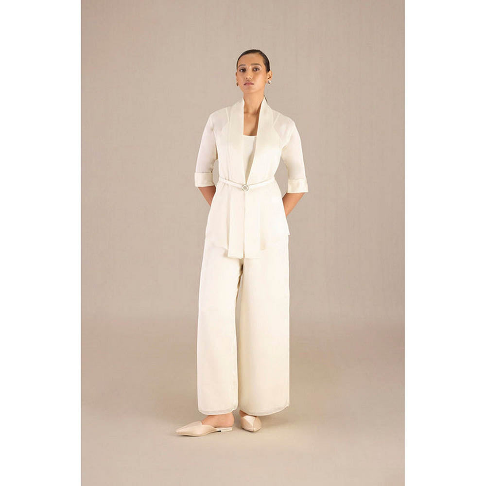 Description : Revamp your wardrobe with this ivory co-ord set from AMPM. Crafted from organza, the top features three fourth sleeves and a square neck. The bottoms are designed with a high waist and wide legs. Team it with a pair of sandals and minimalistic jewellery to complete the look.