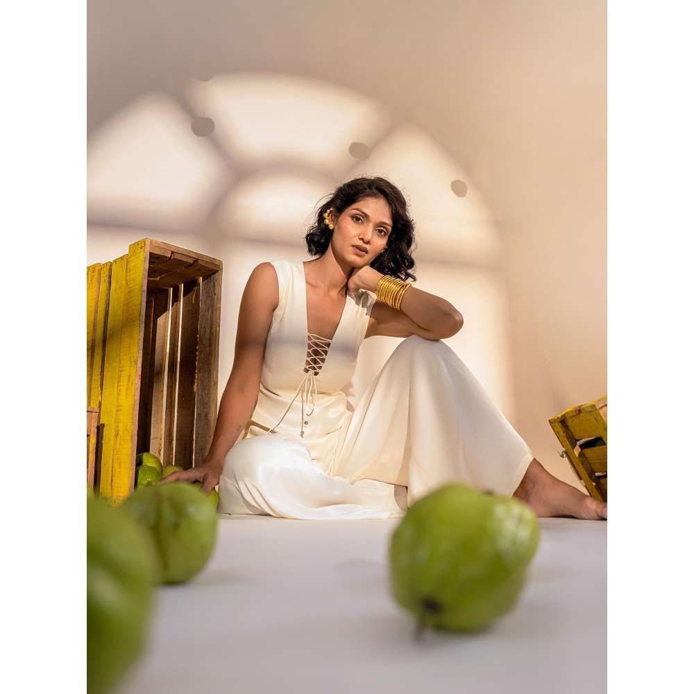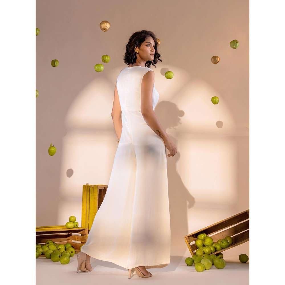 Amrood Off White Solid/Plain Jumpsuit