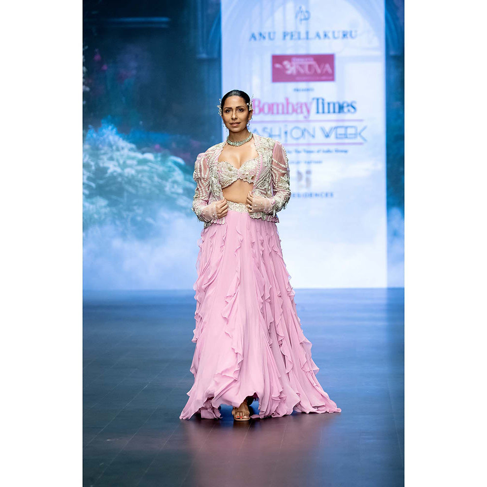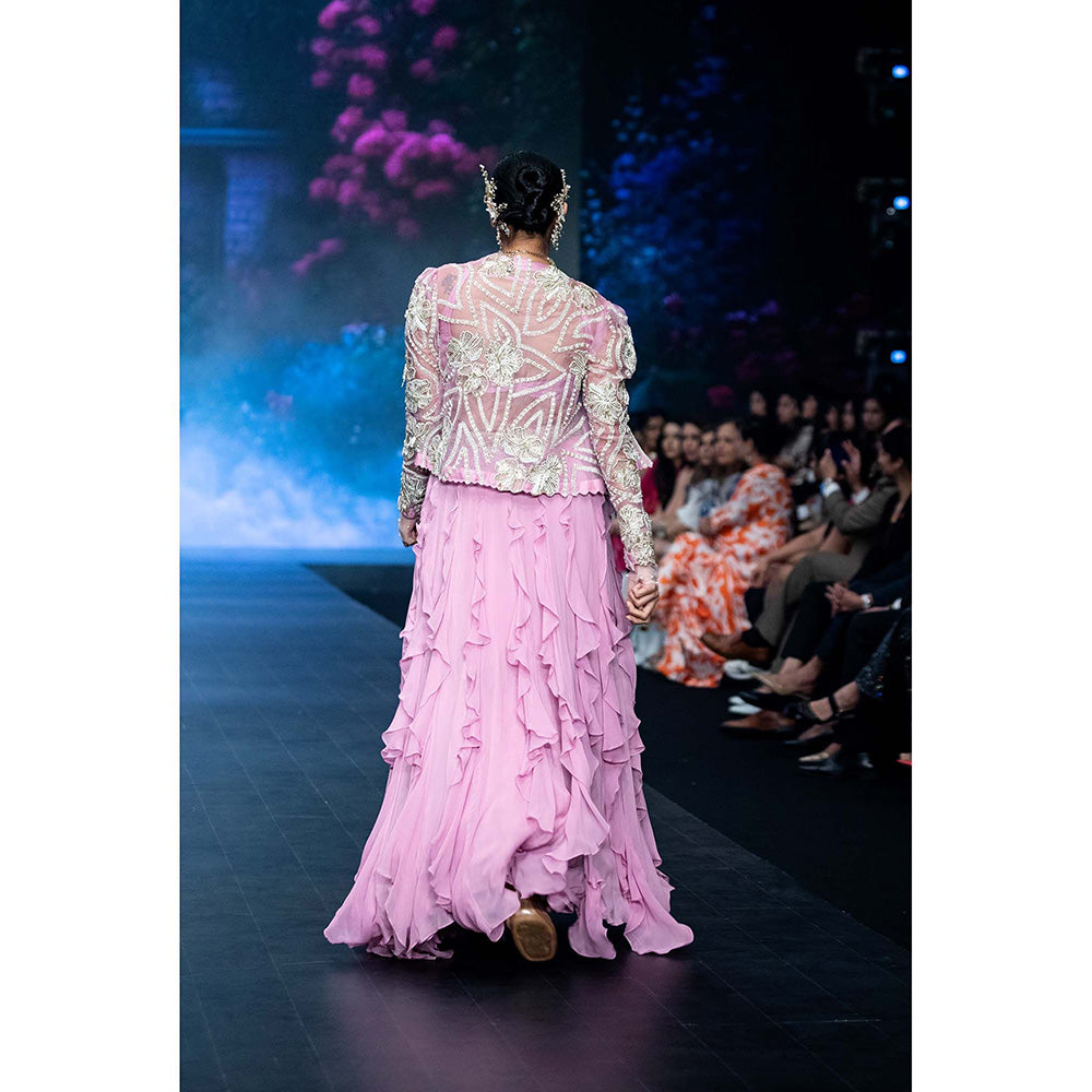 Anu Pellakuru Lavender Mana Embroidered Jacket and Lehenga with Stitched Blouse (Set of 3)