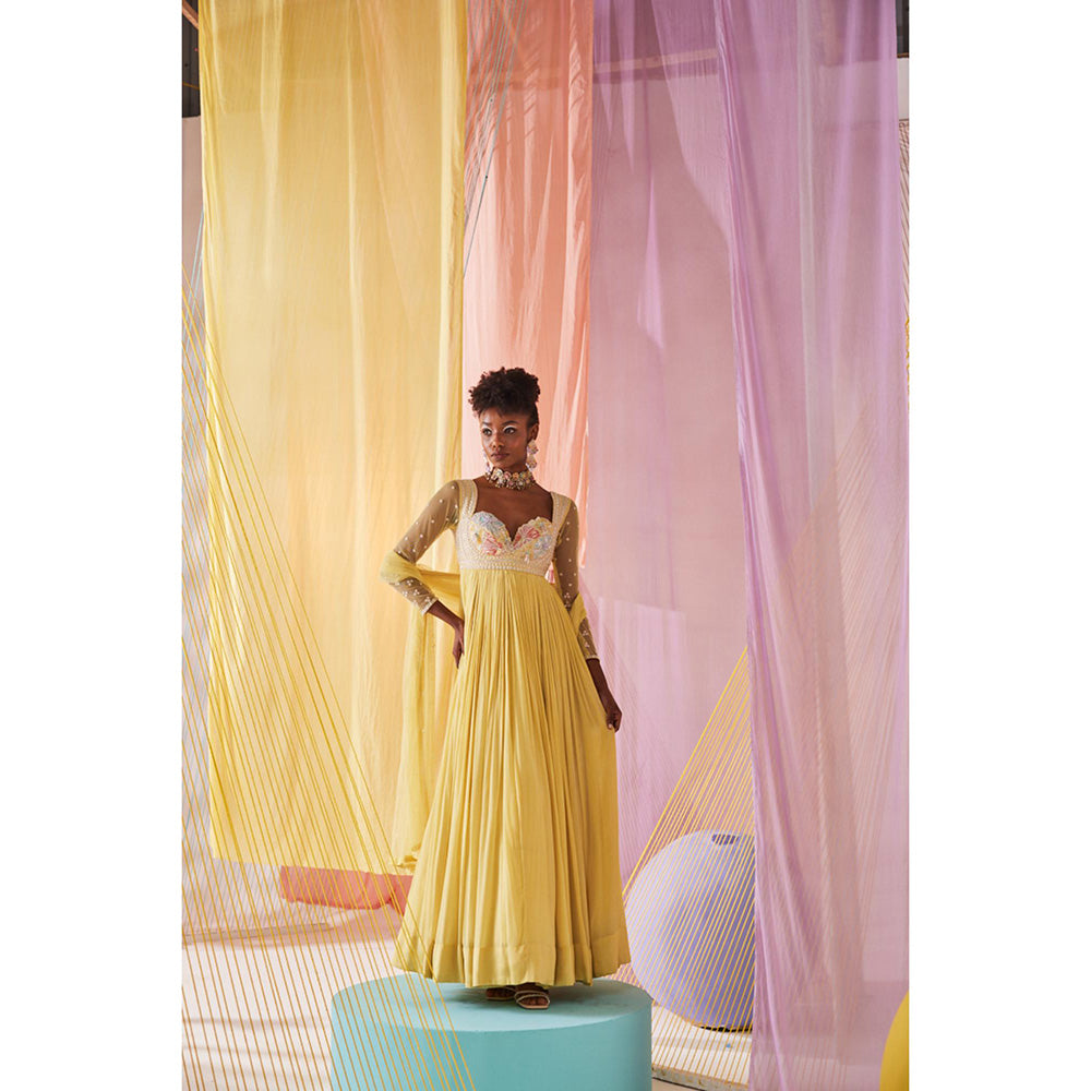Anu Pellakuru Yellow Iris Embroidered Anarkali and Dupatta (Set of 2)