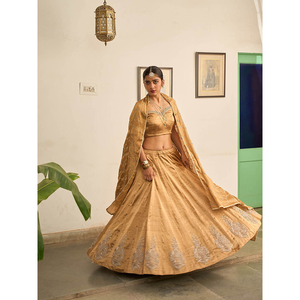 Apeksha Jain Label Gold Suvarna Lehenga with Blouse and Dupatta (Set of 3)