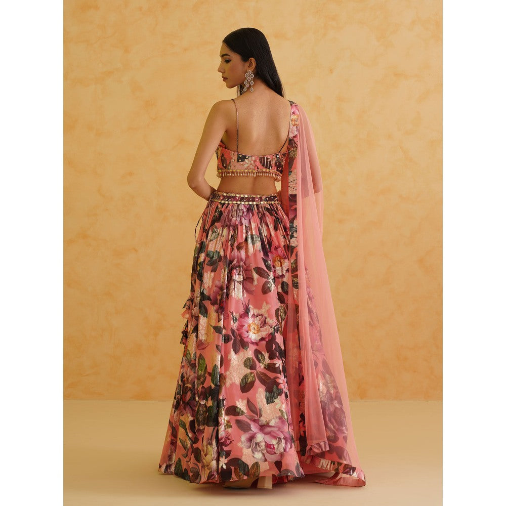 Deepika Chadha Pink Printed Georgette Lehenga with Blouse and Dupatta (Set of 3)