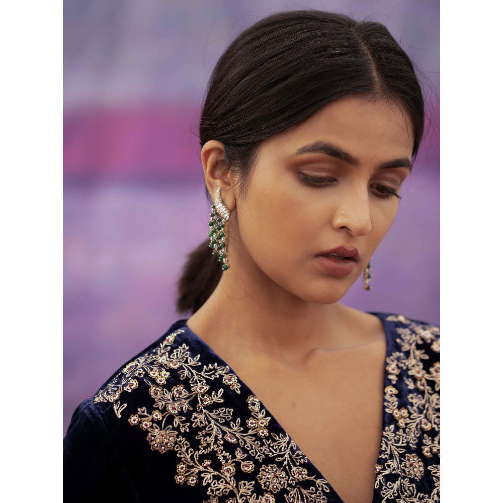 Description : Get ready for the festivities in this kurta set from Deep Thee. Crafted from velvet, it is finished with three fourth sleeves and a V-neck. Complete the look with a pair of stylish wedges and a box clutch.