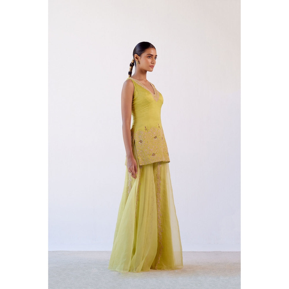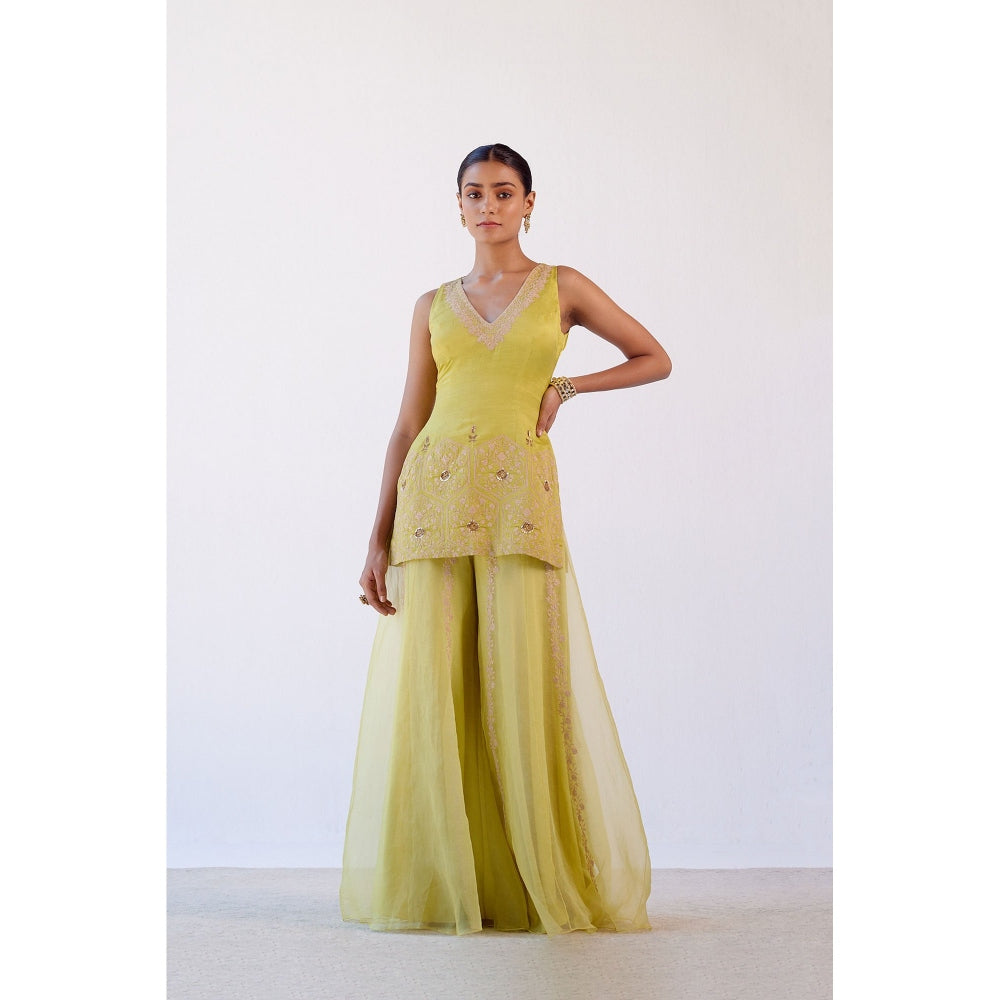 Devnaagri Lime Green Embroidered Kurta and Sharara with Dupatta (Set of 3)