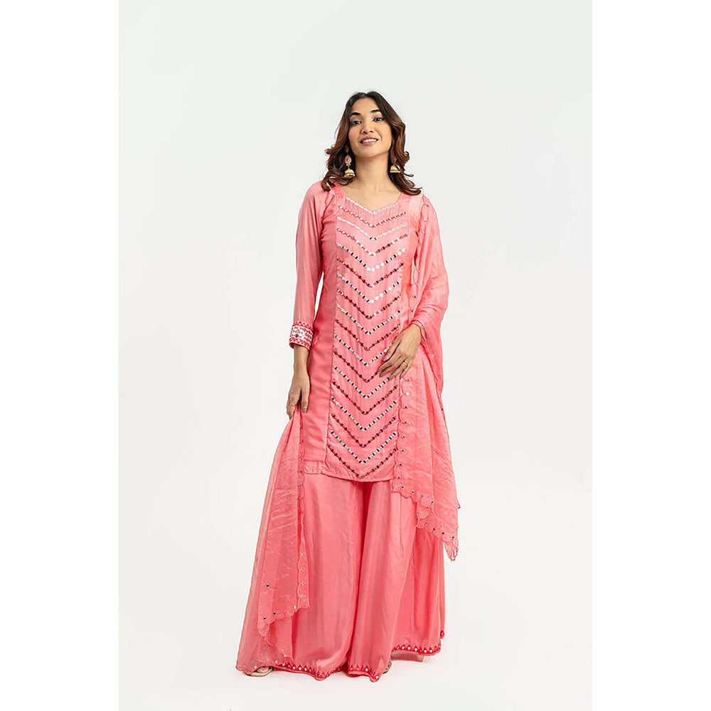 Pink Mirror Kurta with Palazzos & Dupatta (Set of 3)