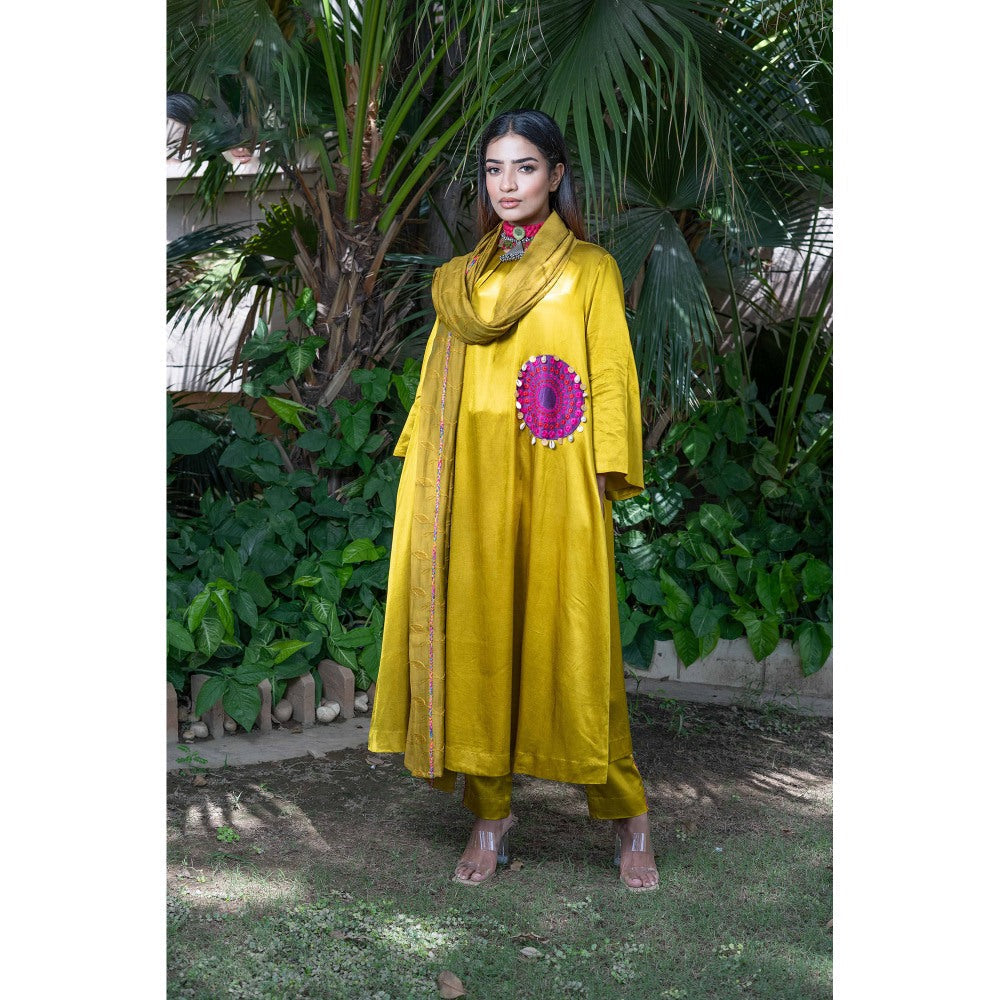 Sunheri Choga Kurta with Pant & Dupatta for Women (Set of 3)