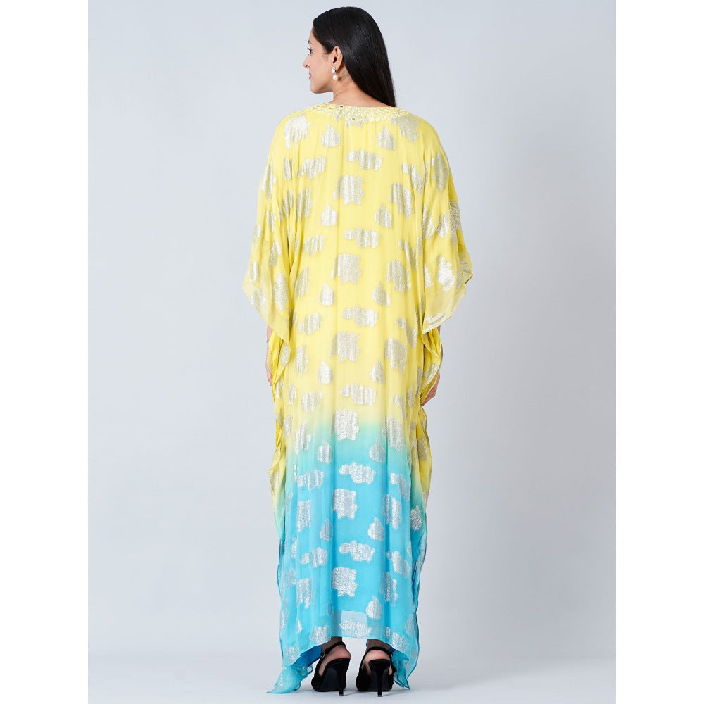First Resort by Ramola Bachchan Yellow and Blue Ombre Full Length Kaftan