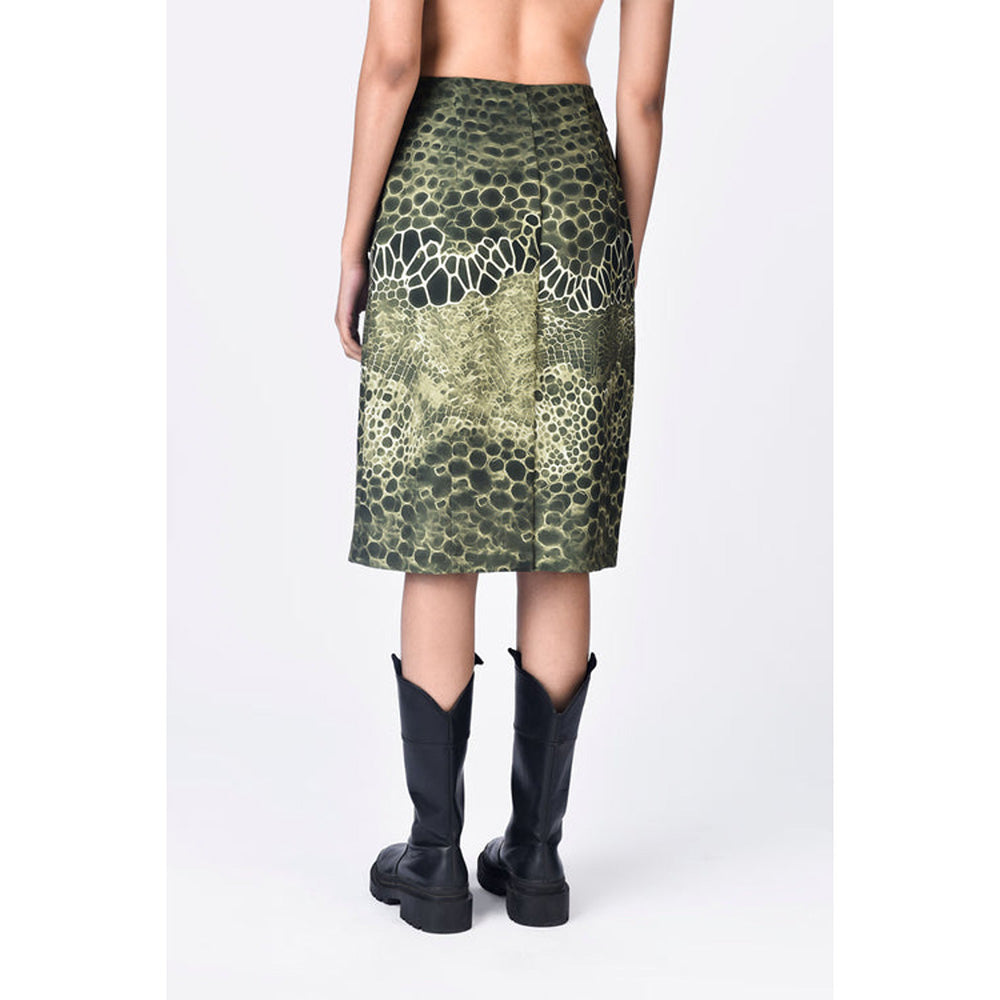 Green Crepe Printed Midi Skirt