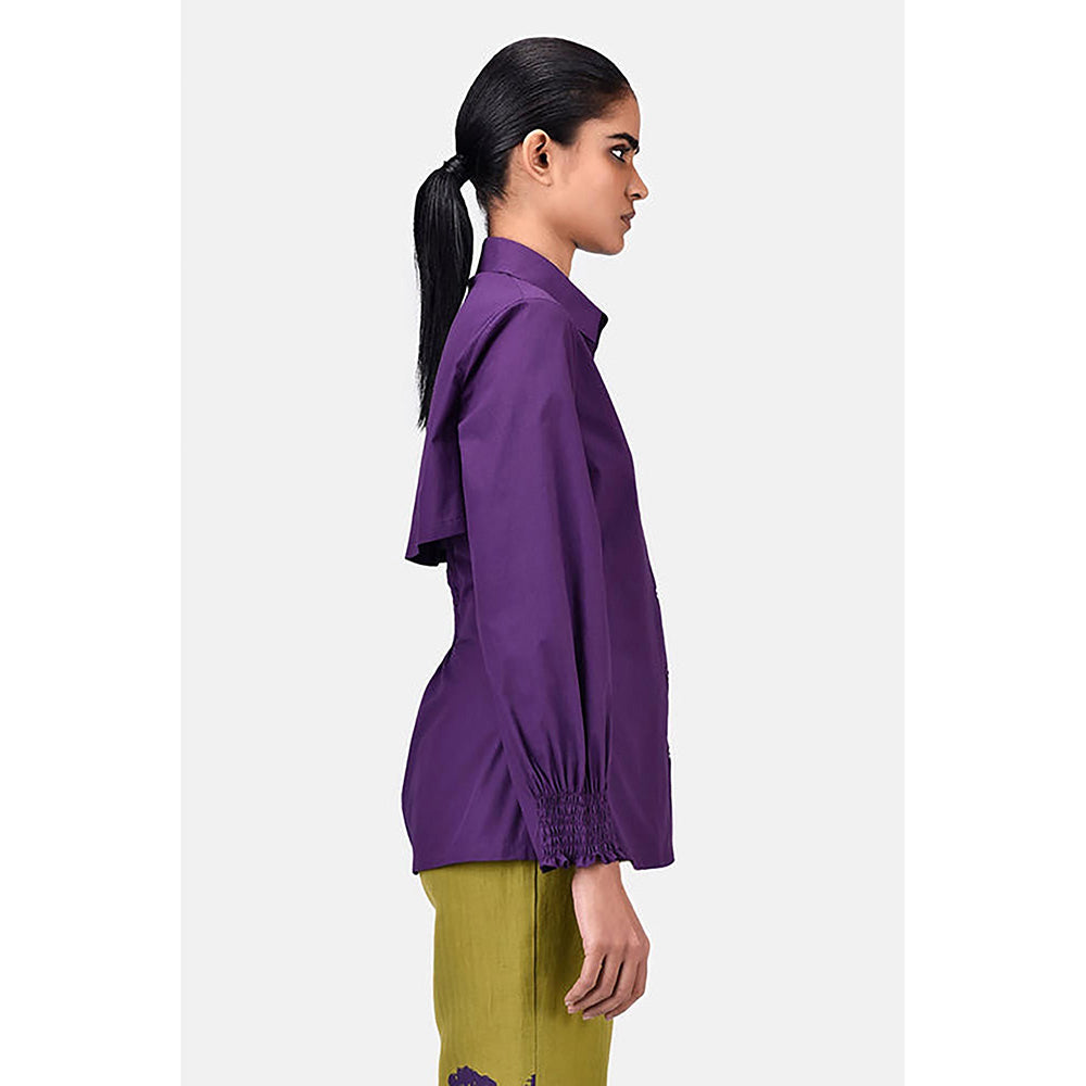 This Regular Fit Women's Button-Down Shirt Features Soft Rounded Sleeves With Smocking On The Sleeve Hem And Centre Back, Complemented By A Stylish Back Cutout. Crafted From High-Quality Cotton Poplin, It Combines Comfort With Chic, Modern Details.
