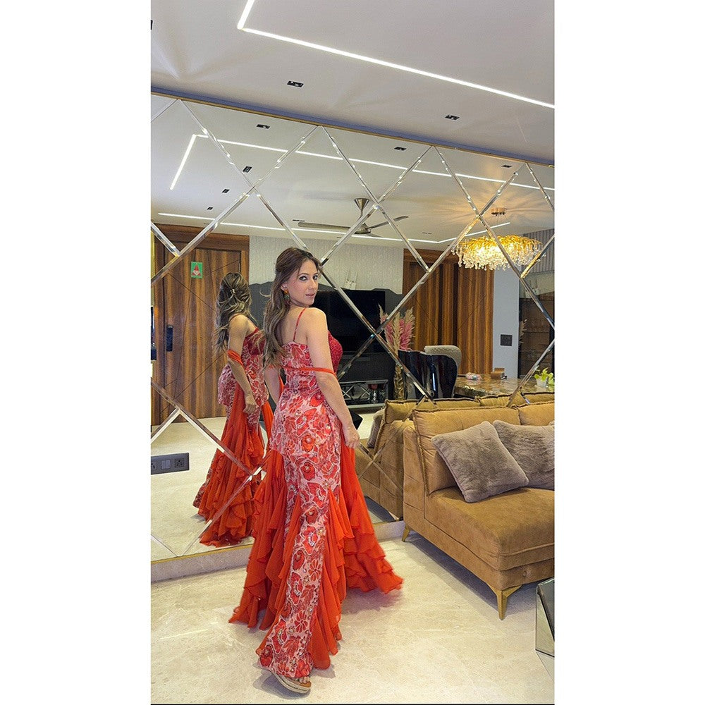 Glamique by Gungun Women Red Ruffle Top with Sharara and Dupatta (Set of 3)