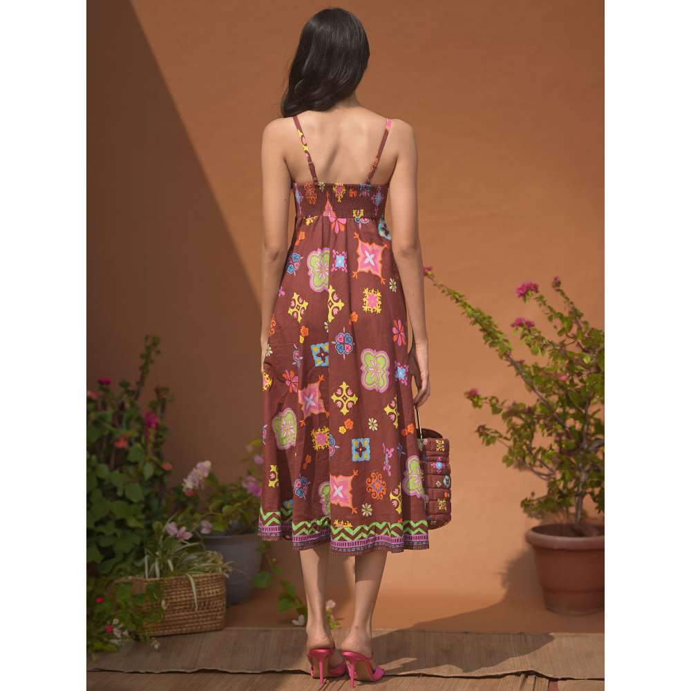 Description : Amp up your styling game with brown midi dress from GUAPA. It is crafted from high-quality fabric. It features printed pattern with sleeveless shoulder straps. Team it up with heels to complete your look.