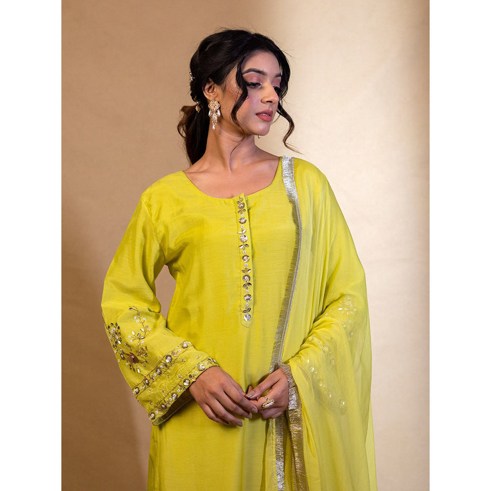 Harleen Kaur Lime Yellow Kurta with Palazzo and Dupatta