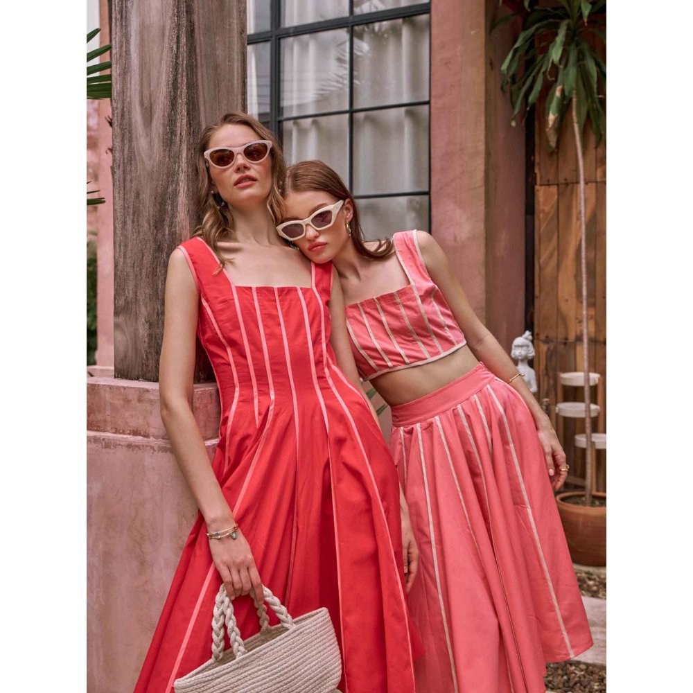 Description : Style it & flaunt it with this coral Co-ord Set from House of Fett. Made from high quality poplin, it features zipper closure and stripes pattern along with sleeveless & square neck design. Pair it with wedges or heels to complete your ensemble.