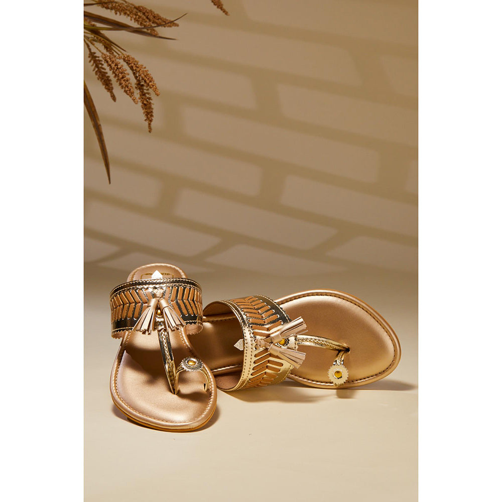 Description : Say hello to your new summer BFFs - Kolhita Kolhapuris! With that classic Kolhapuri charm and a fresh twist of weave detailing, these beauties are here to bring the sass, the style, and all the comfort your feet deserve. Whether you're twirling in a flowy kurta, vibing in an Indo-Western co-ord, or just out chasing sunsets, these Kolhapuris get the assignment. They're comfy enough for all-day strolls and stylish enough to slay every #DesiGirl look.