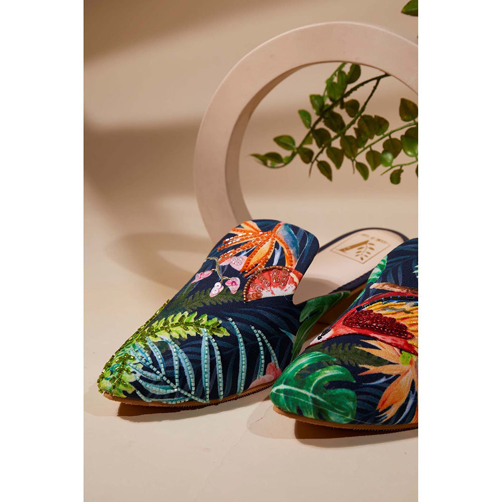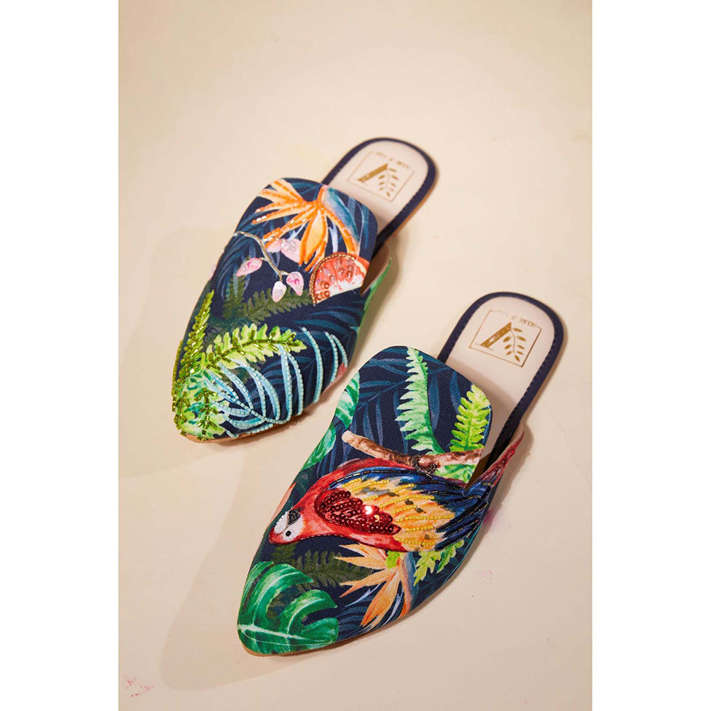Navy Blue Parrot Paradise Mules