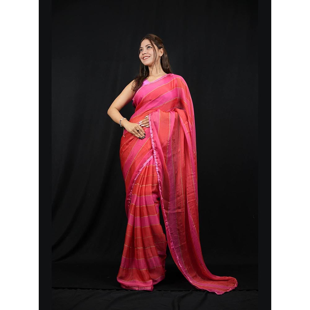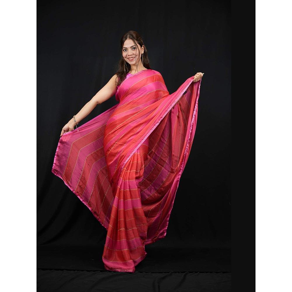 Multi-Color Stripes Pre-Draped Saree with Unstitched Blouse