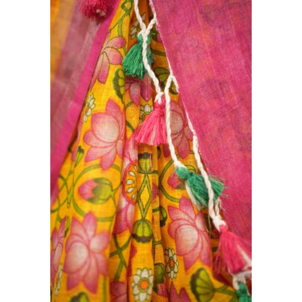 Isadora Life Womens Printed Tassels Multi-Color Pre-Draped Saree With Unstitched Blouse