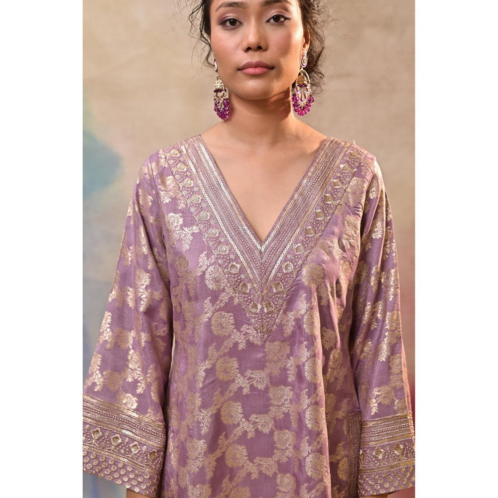Jasashi Lavender Brocade Kurta with Pant and Potli Bag (Set of 3)