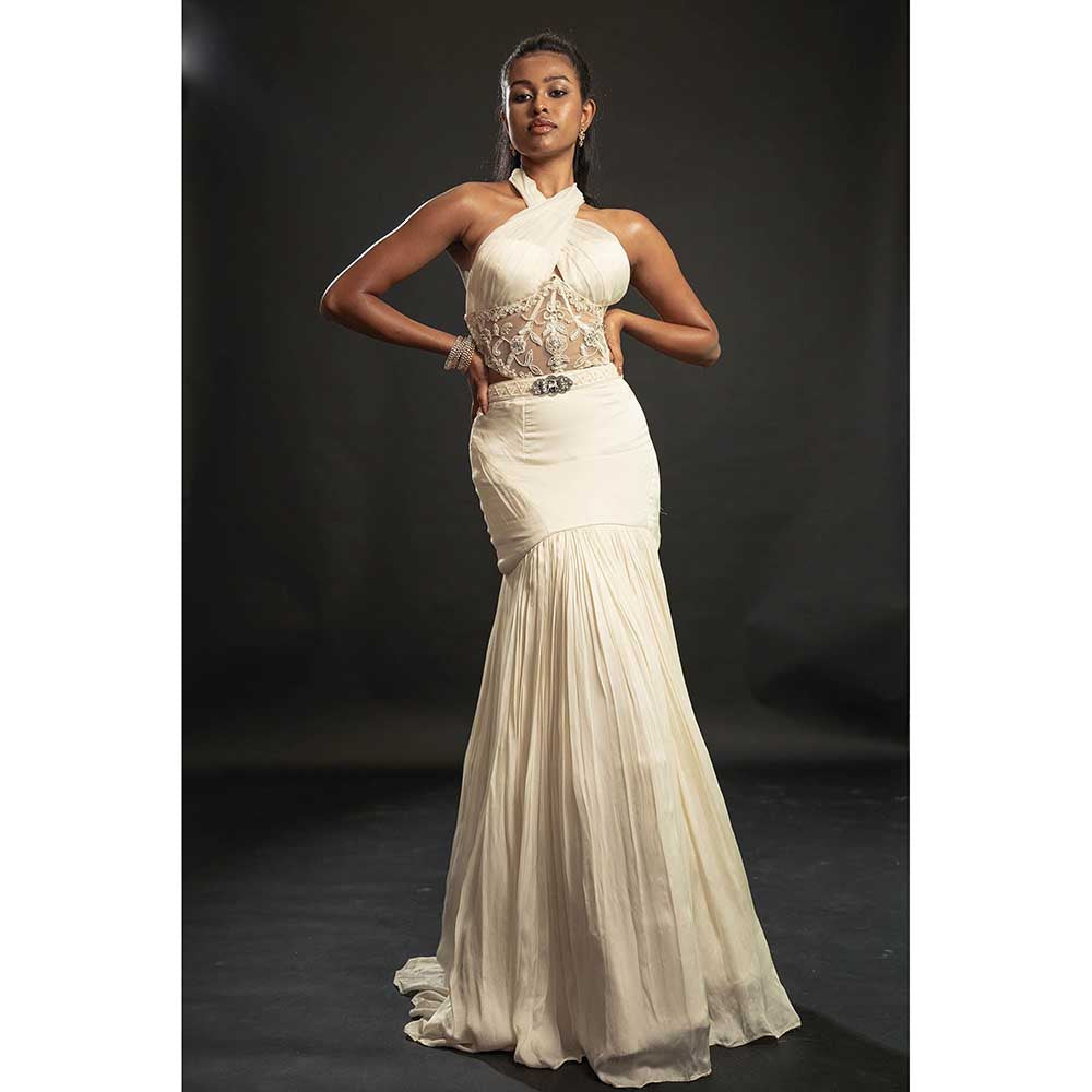 Ivory Silk Fish cut Skirt With Blouse And Cape (Set of 3)