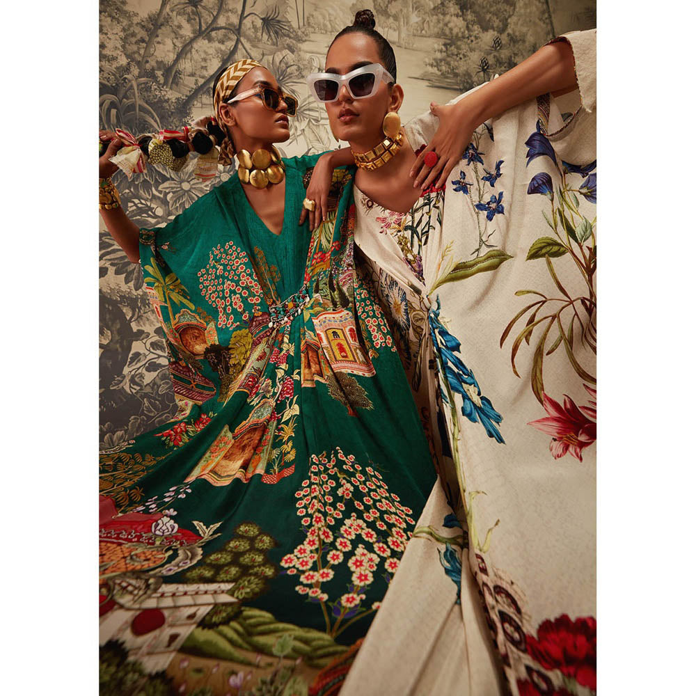 Description : Featuring A Printed Kaftan with A V Neckline. It Has An Intricately Handcrafted Beadwork On The Botanical Motifs