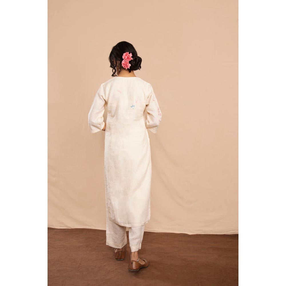 Step back in time with Hoorain Kurta Set. The 3/4th sleeves and V-neck with a slit add a touch of elegance to this simple yet stylish design. The floral embroidery adds a pop of color and a feminine touch. Made from high-quality linen fabric, this kurta set is comfortable and perfect for all-day wear. Pair it with your favorite accessories for a complete and sophisticated look.