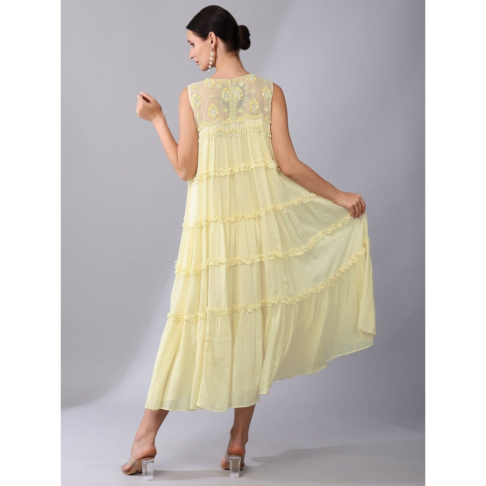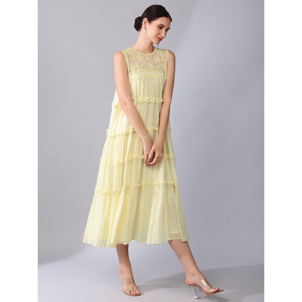 KEITH GOMES Yellow Tier Cotton Chiffon Dress