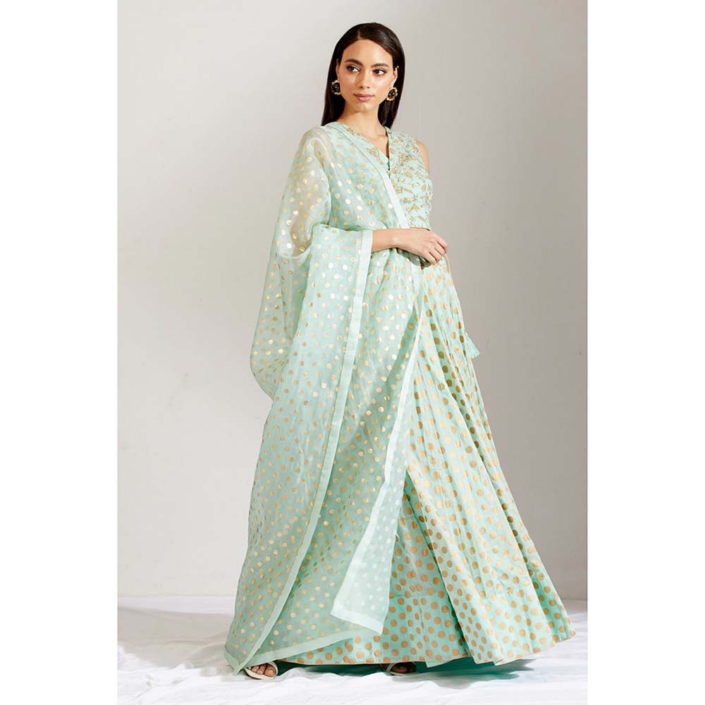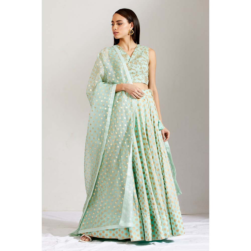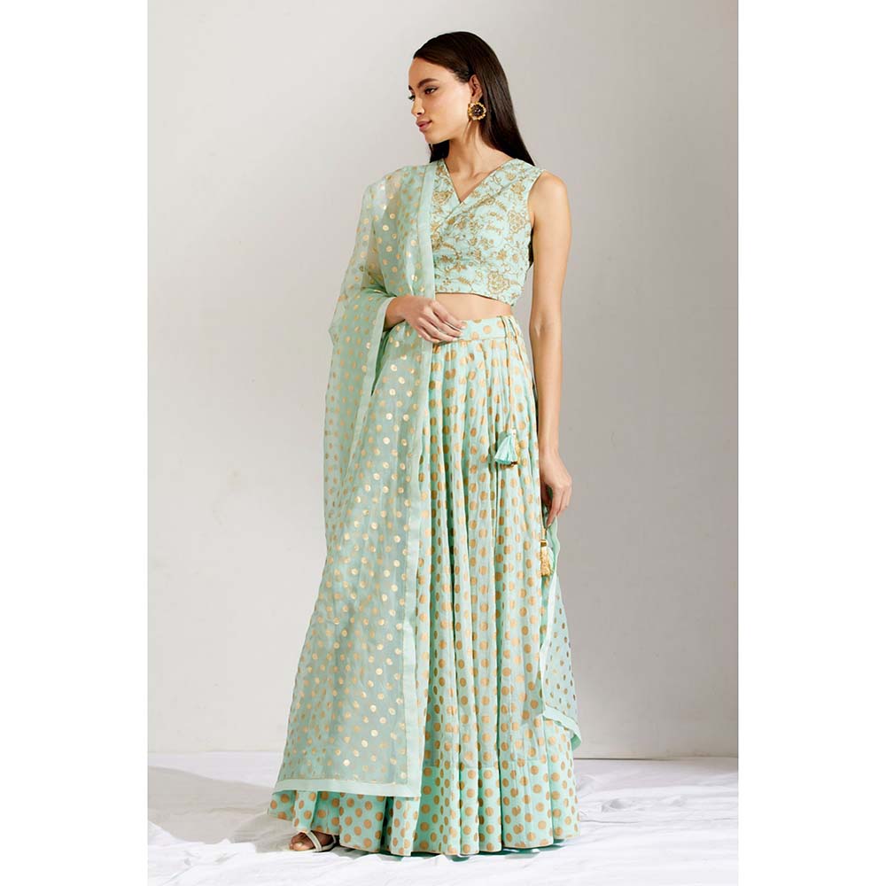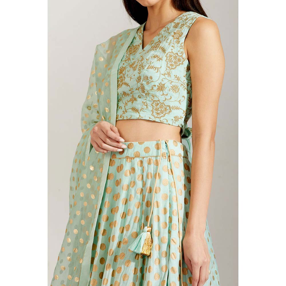 Label Earthen Women Green Floral Lehenga with Choli & Dupatta (Set of 3)