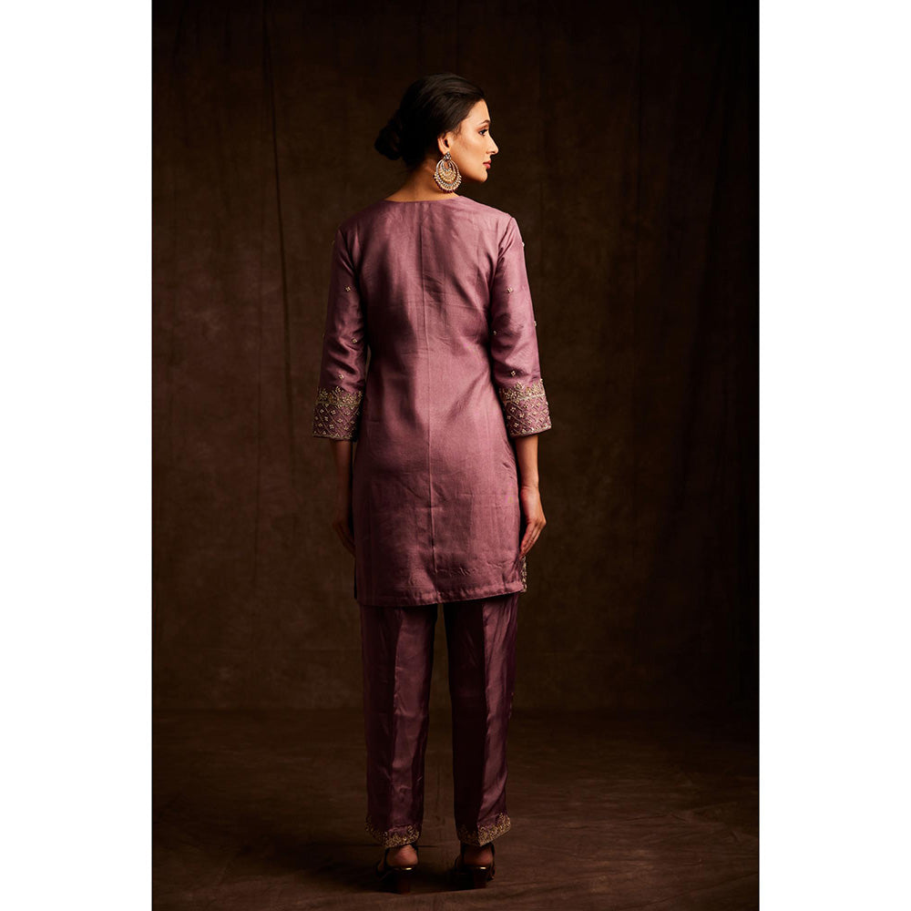 Label Gayatri Bishnoi Onion Pink Gota Dori Kurta with Pant (Set of 2)