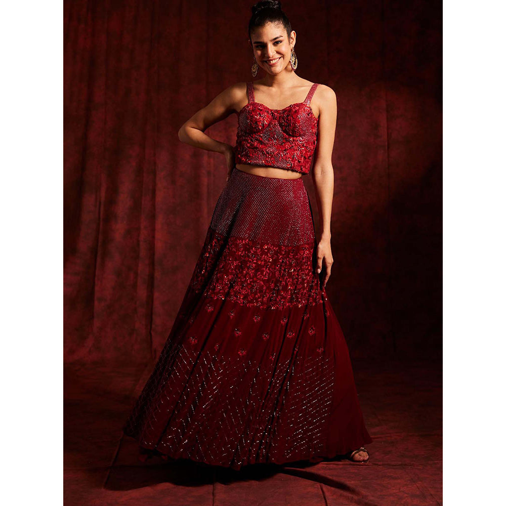 Label Gayatri Bishnoi Red Mulberry Blouse with Lehenga and Cape (Set of 3)