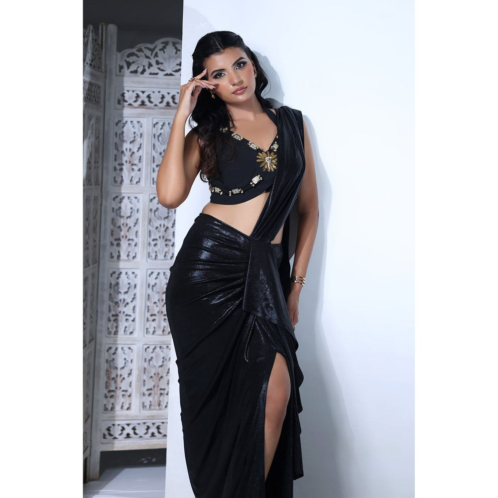 Noir Melt Black Pre Draped Saree with Stitched Blouse