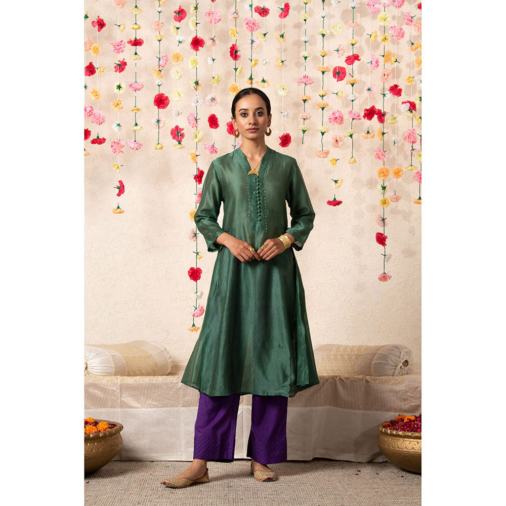 Maison Shefali Sitara Classic Kurta Emerald (Set of 2)