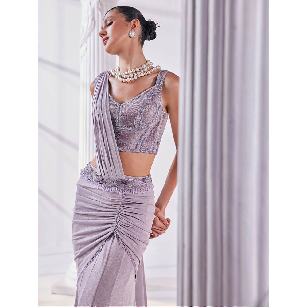 MANDIRA WIRK Purple Saree with Stitched Blouse and Belt