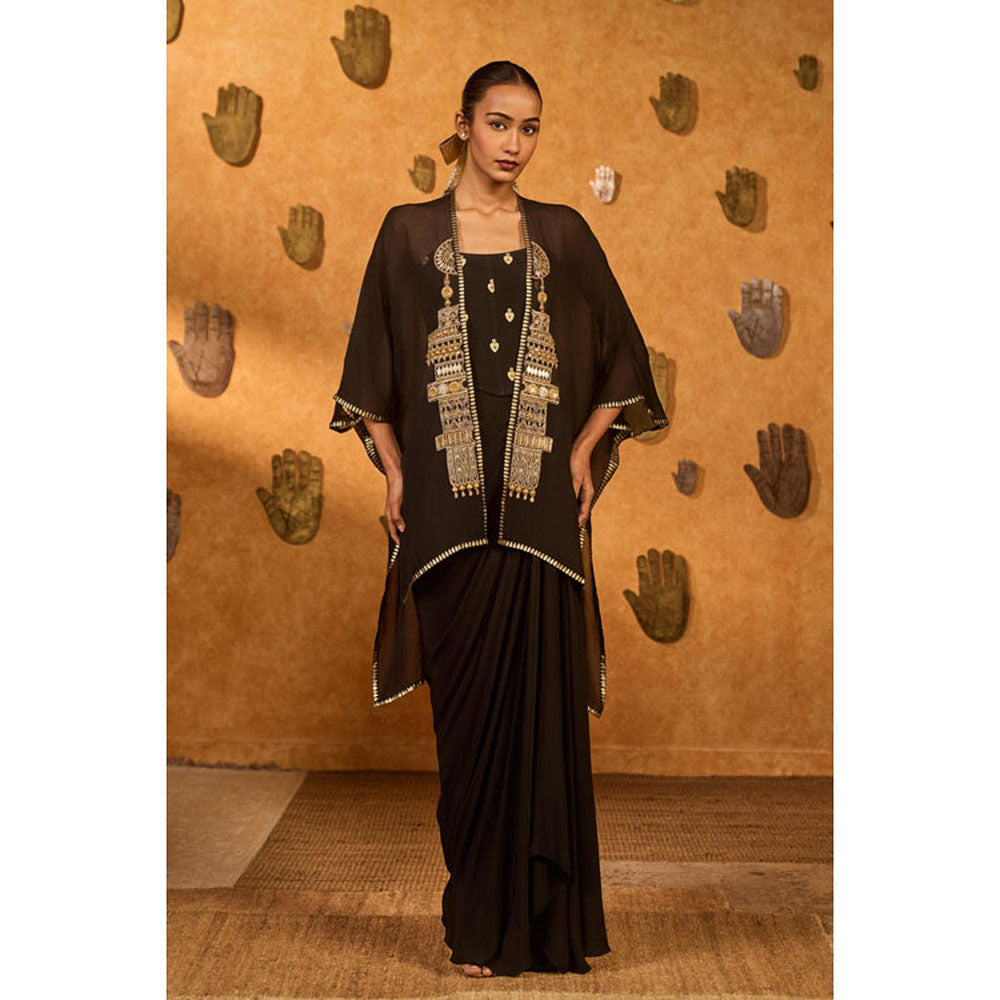 Masaba Brown Heartbeat Draped Skirt with Camisole and Cape