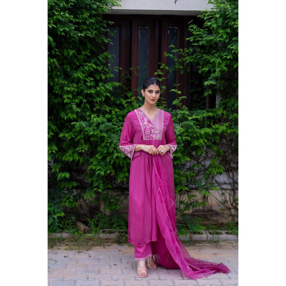 MINSH Cerise Purple Kurta With Pant And Dupatta (Set of 3)
