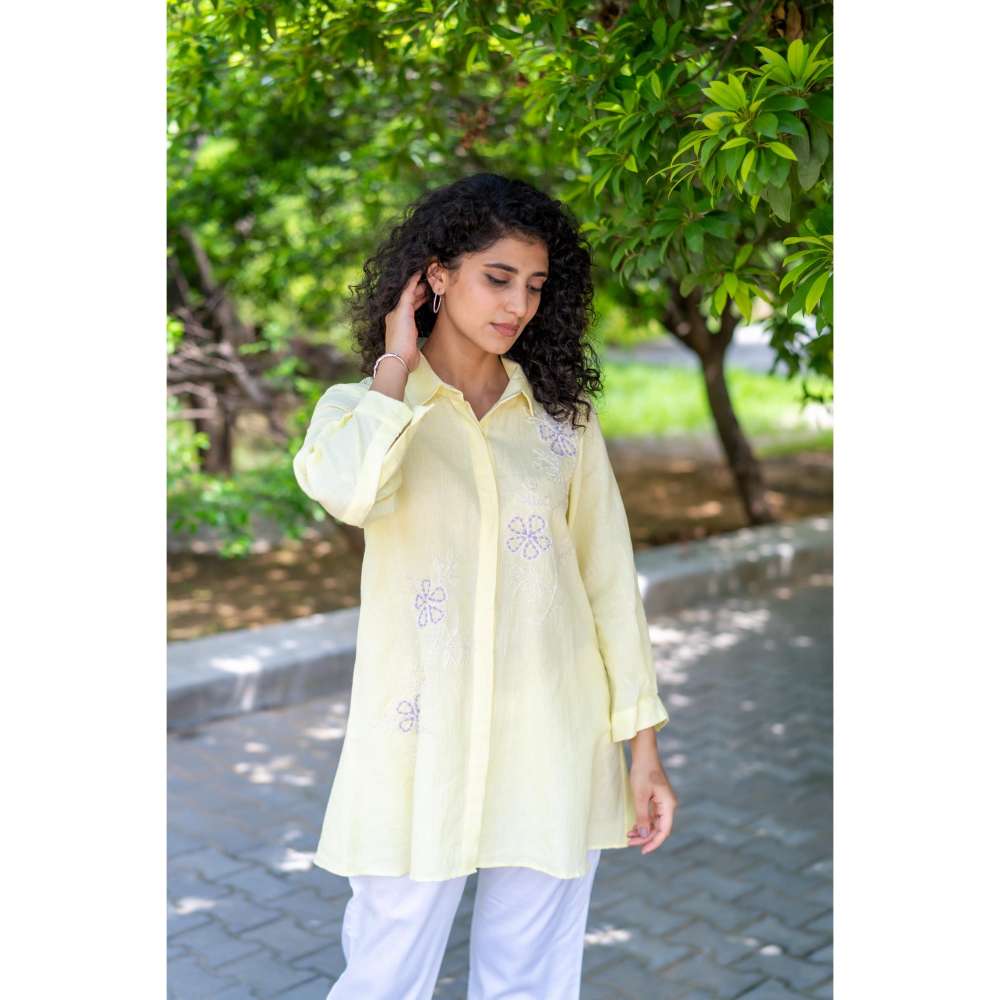 Description : The Pastel Yellow Hue, Combined With Delicate Embroidery, Elevates The Shirt Kurtis Clean And Effortless Appeal, Making It A Perfect Pick For Both Casual And Semi-Formal Occasions. Pair It With Breathable Linen Pants For A Chic And Comfortable Summer Ensemble.