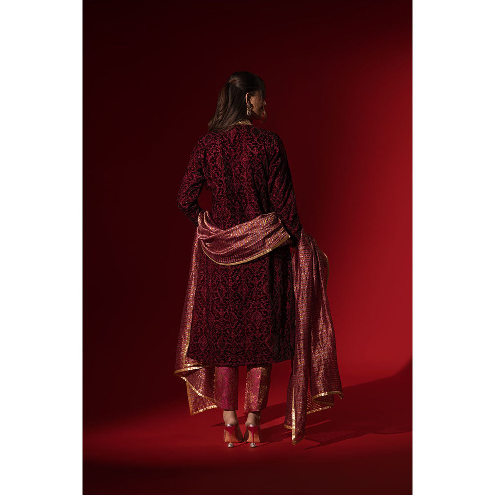 Naseebo Maroon Noir Luxe Velvet Kurta with Pant & Dupatta