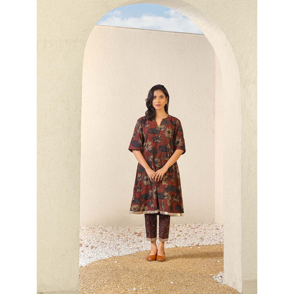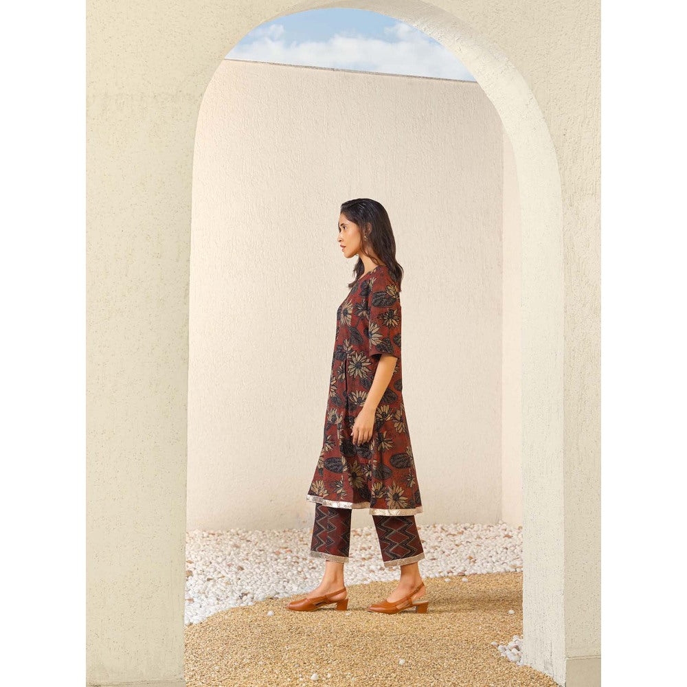 Naseebo Maroon Terracotta Dream Ajrakh Kurta with Pant (Set of 2)