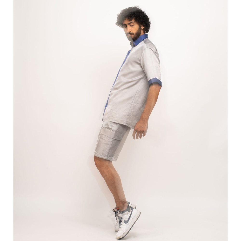NEORA BY NEHAL CHOPRA Grey and Navy Blue Collar Colorblocked Co-Ord Set (Set of 2)
