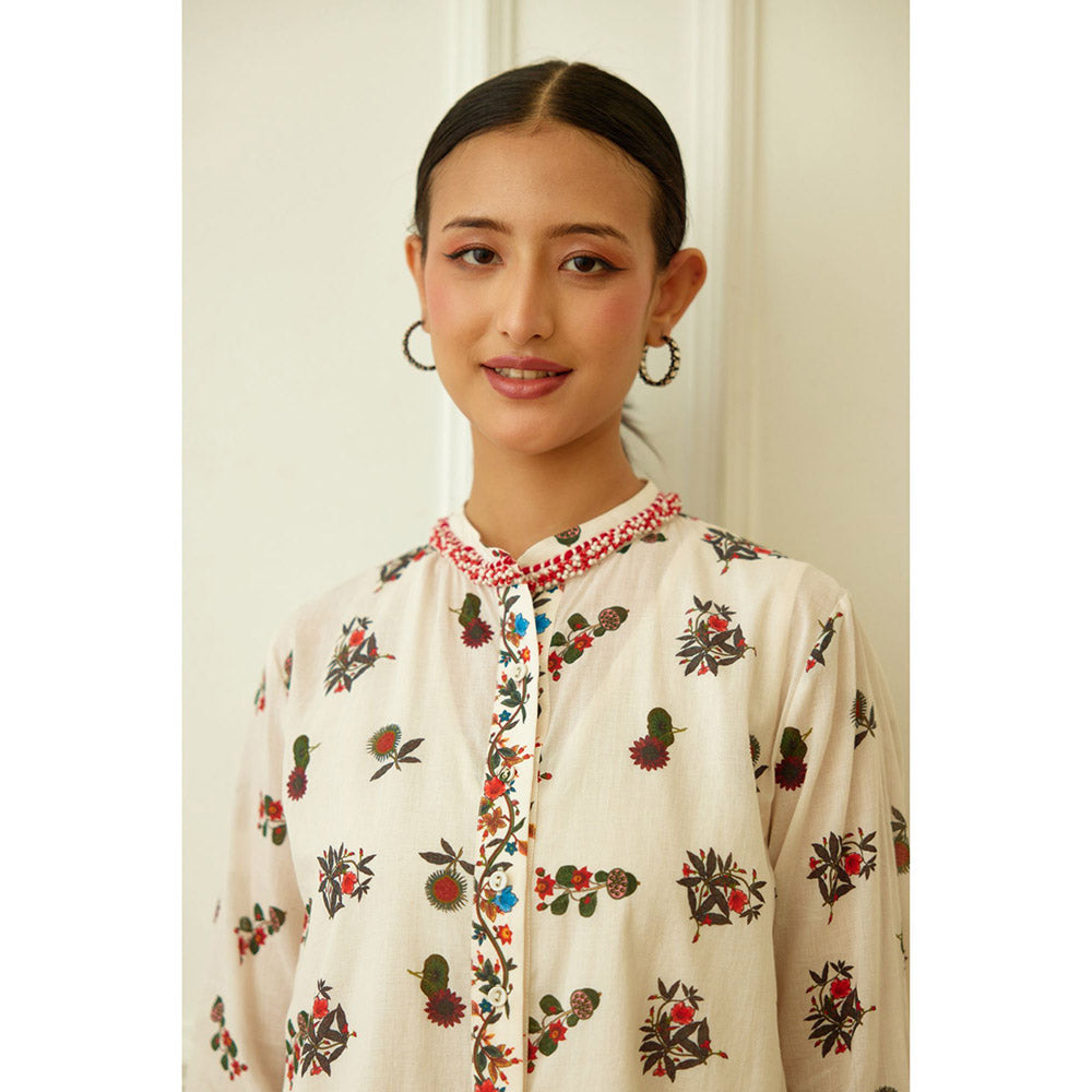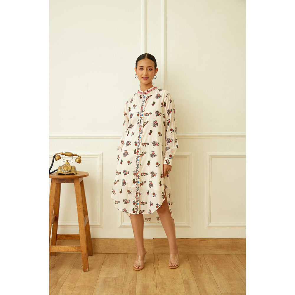Nikasha Ivory Kohinoor Buta Print Shirt Dress