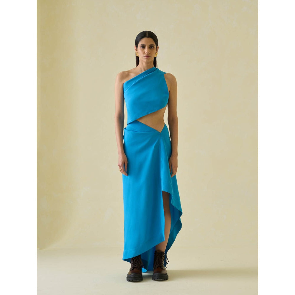 No Grey Area Blue One Shoulder Sari Top