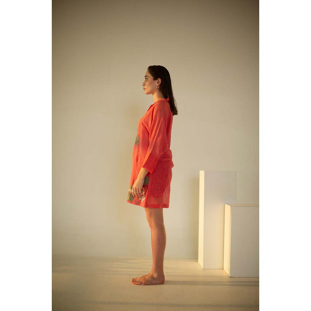 Fern Coral Red Embroidered Co-Ord (Set of 3)