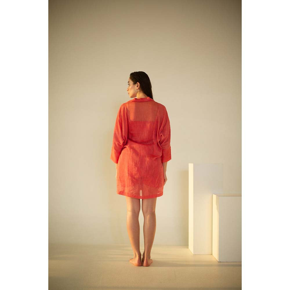 OJA Fern Coral Red Embroidered Co-Ord (Set of 3)