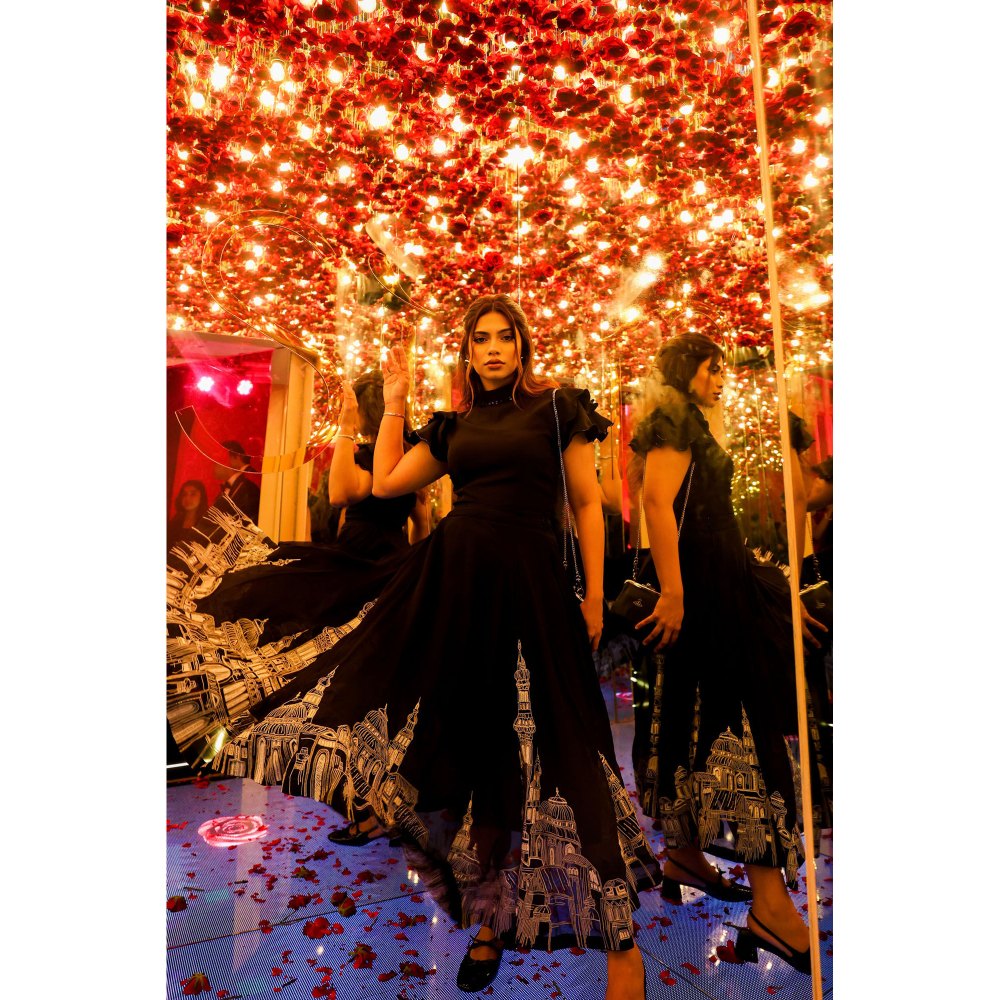 Description : Elevate Your Wardrobe With This Exquisite Skirt, Crafted From Luxurious Banana Crepe And Organza Fabrics. Featuring A Sleek Black Palette And Intricate Architectural Motifs, Its Voluminous Silhouette Exudes Dramatic Elegance. Perfect For Formal Events Or Cultural Evenings, Pair With A Structured Crop Top, Statement Heels, And Minimal Jewellery For A Timeless, Sophisticated Look.