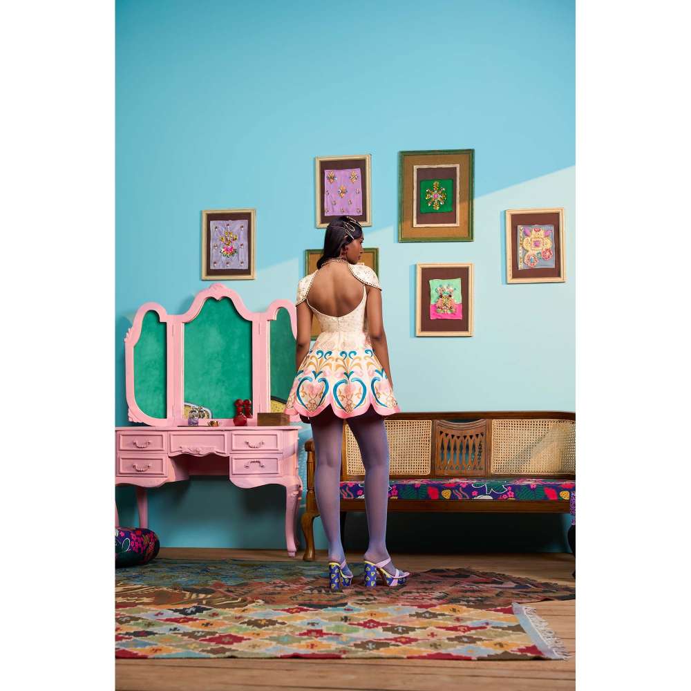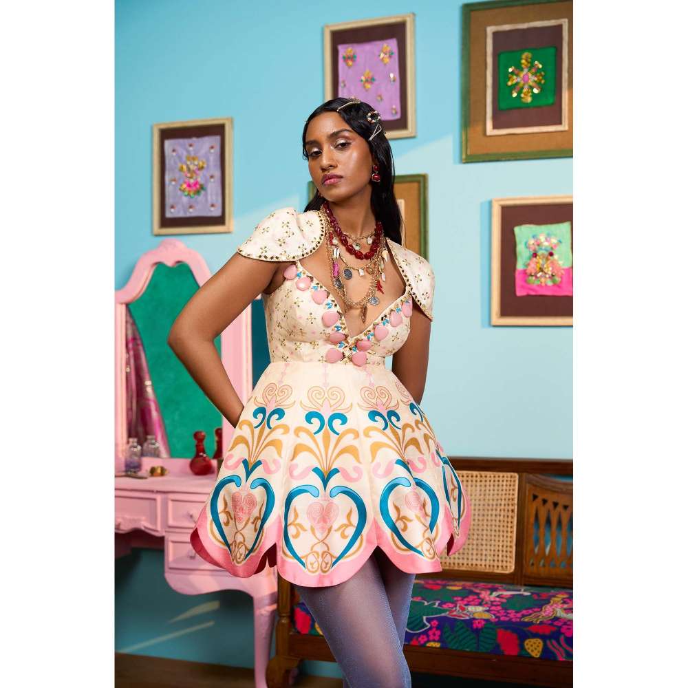 Description : Embrace your style with this pink dress from Papa Don't Preach by Shubhika. Made from high quality raw silk, it features zipper closure and printed pattern along with cap & sweetheart design. Pair it with minimal jewellery and a handbag to complete your ensemble.
