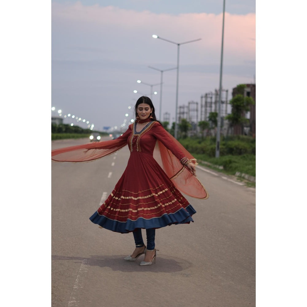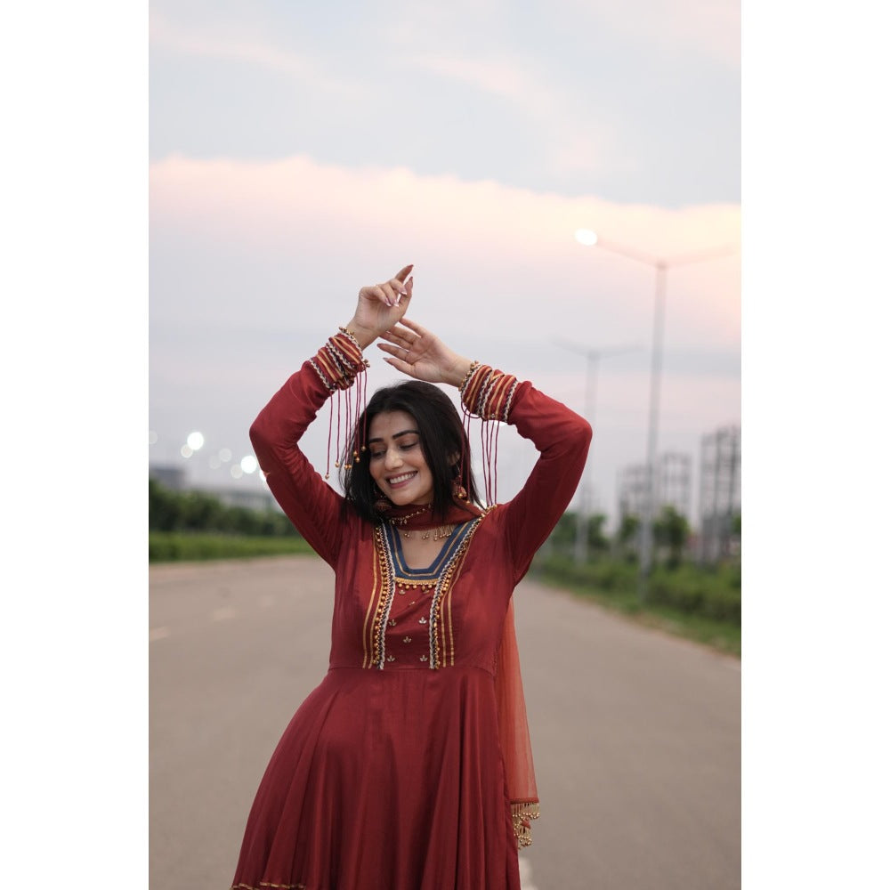 Embellished Gota Ghungroo Anarkali Kurta with Churidar and Dupatta (Set of 3)