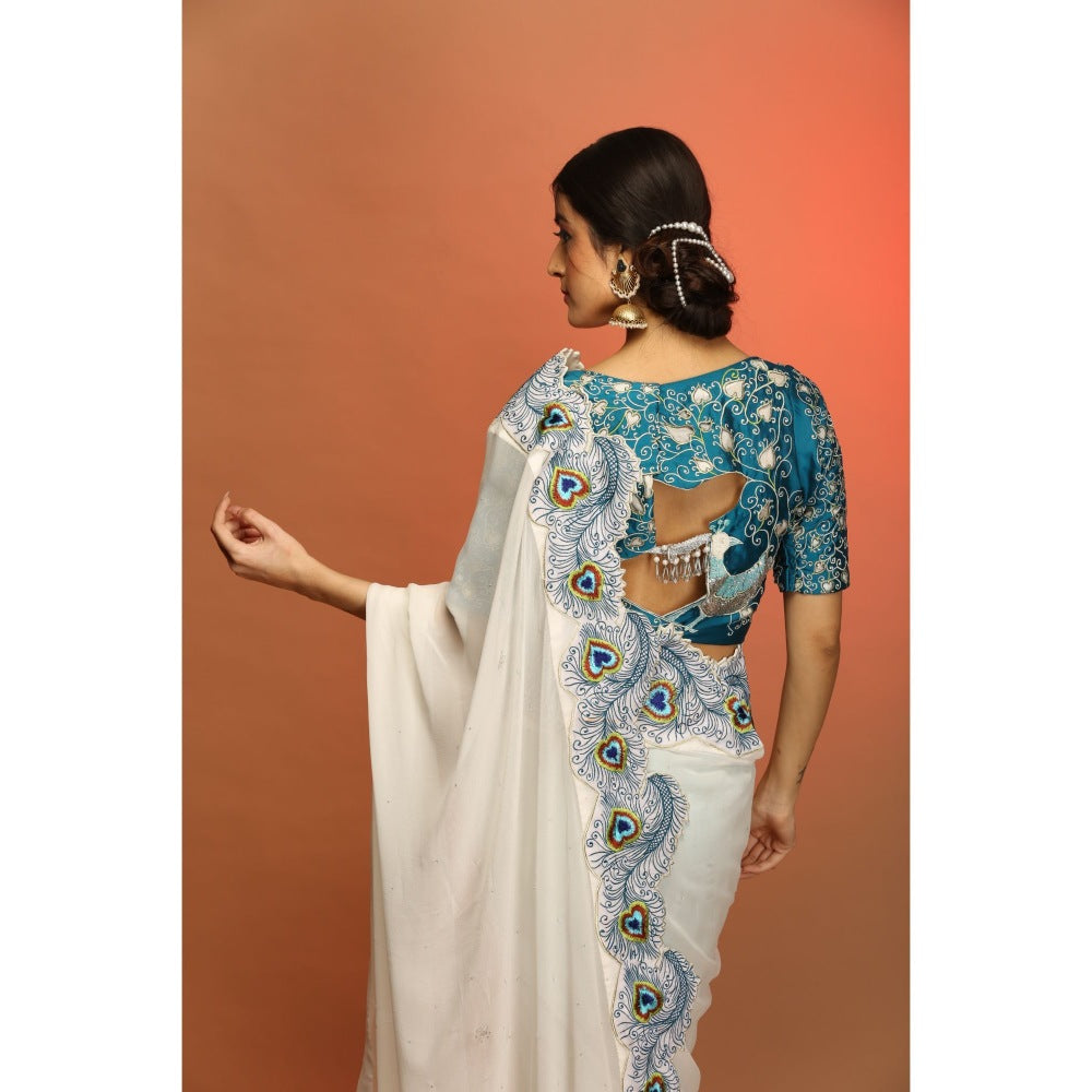 White Miraa Saree with Stitched Blouse