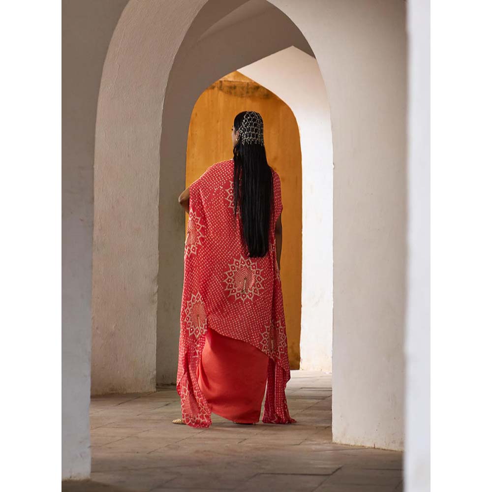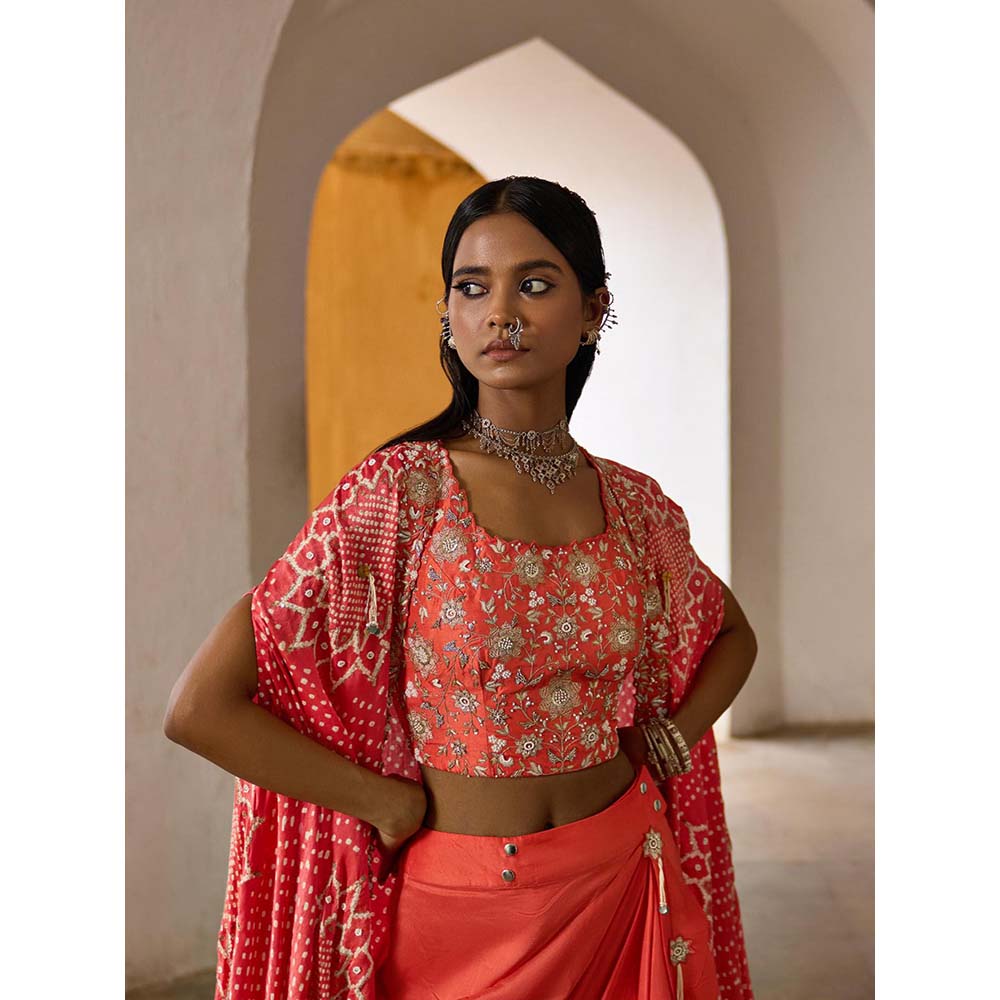 Peach Suraj Mukhi Cape with Blouse and Skirt (Set of 3)
