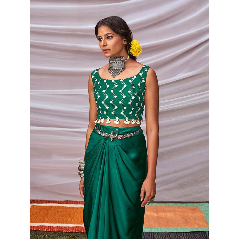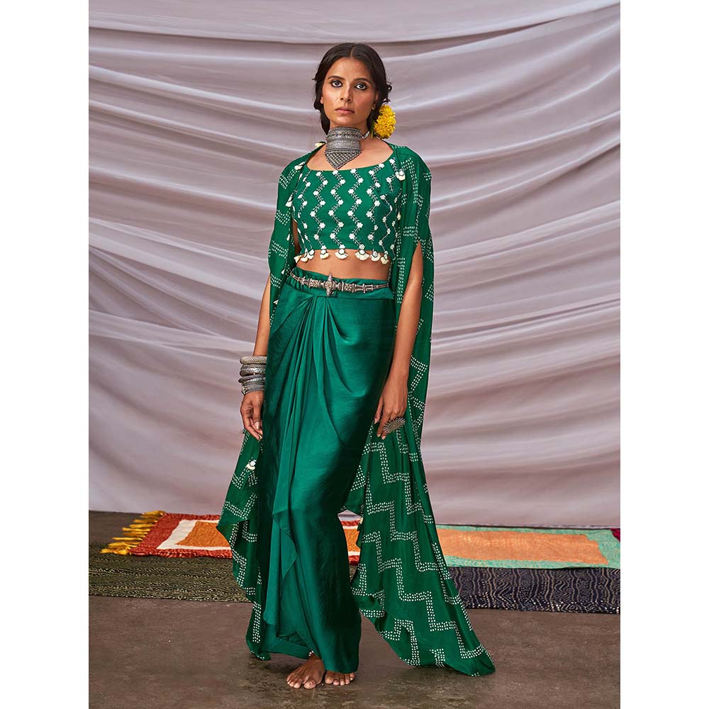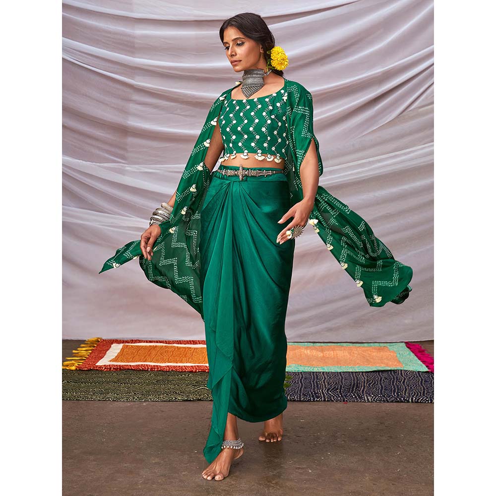 Description : Bring a touch of class and beauty into your wardrobe with PinkCity by Sarika's green blouse, skirt, cape. It features embroidered, bandhani pattern with cape, round neck design and mid waist bottom wear style. It is crafted from high-quality fabric, making it ideal for both dressy occasions and more relaxed gatherings. This classic piece will always be in style; it will take your outfit to the next level.