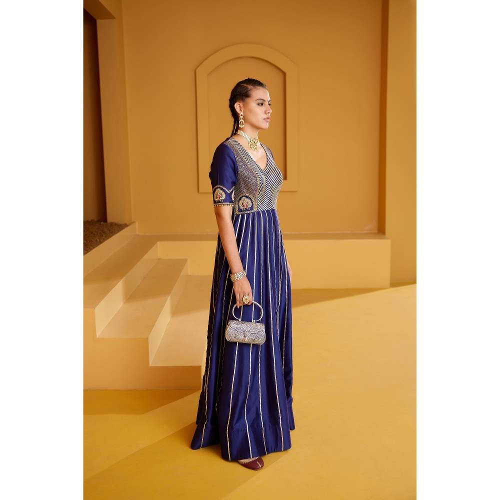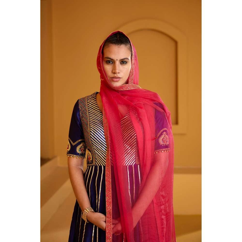 PRATIBHA SULTANIA Purple Front Open Panelled Anarkali Kurta with Pants & Dupatta (Set of 3)